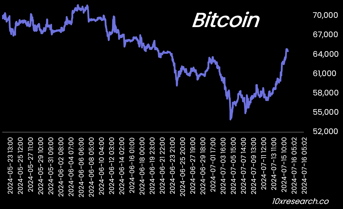 👇1-12) Often swayed by changing narratives, rumors, and speculation, Bitcoin can rapidly adjust its value based on new information. Since this past Friday, Bitcoin has surged by a significant 10%. What initially seemed like an oversold rally evolved into a breakout from a clearly defined downward trend. Our key level—bearish below 61,133 and bullish above—was surpassed, signaling a shift in market sentiment from bearish to bullish.