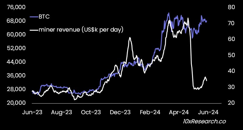👇1-11) The Bitcoin network appears to be doing much better than initially feared after mining rewards were cut in half on April 20. The Bitcoin halving coincided with the launch of Runes, which allows users to mint tokens on top of the Bitcoin network, generally meme-coins.