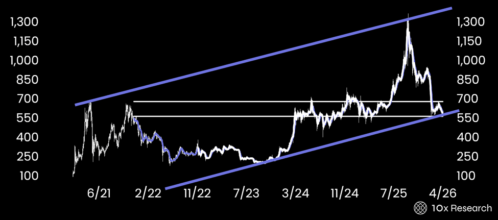 BNB at lower channel support - a compelling buy? Or not cheap enough?