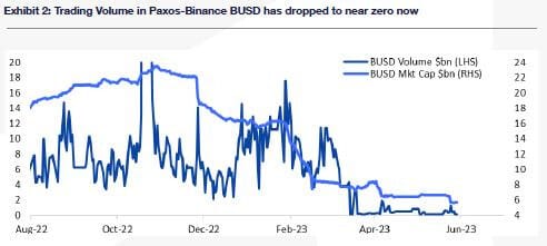 50% of Bitcoin (BTC) held on exchanges has moved outside of the U.S. due to regulatory uncertainty, and for Ethereum (ETH) this number is even higher at 56%. Spot volume market share for U.S. exchanges has fallen to 21%, with perpetual futures markets being non-existent on U.S. exchanges, but 11x larger than the spot market. The U.S. based stablecoin USDC (Circle) market cap has fallen from $55 billion to $28.4 billion, while Paxos-Binance BUSD has fallen from $23 billion to $5.7 billion.