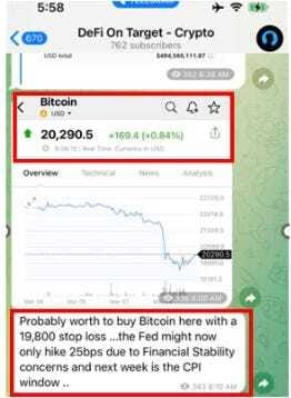 Members of our Telegram group (DeFi on Target) got this timely update to buy Bitcoin at 20,290 on March 11 2013 !!!