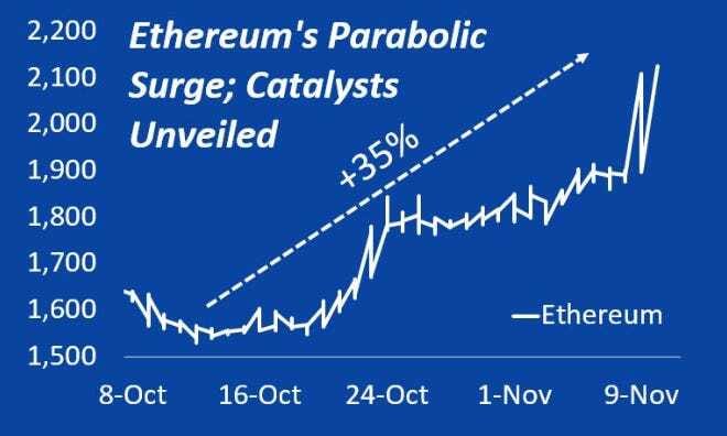 On September 28, Ethereum was priced at $1,788, and our trading model projected a +39.8% upside over the next two months β targeting $2,500. On Monday, November 6, we identified the bullish breakout in Ethereum as revenue was improving, which signaled a βtactical position in playβ for us. Our own Greed & Fear Index of the Ethereum / Bitcoin ratio signaled that crypto was moving away from βbetaβ where everything is just about one specific topic to βalphaβ when altcoins outperform. BlackRock registered an Ethereum Trust in Delaware, signaling their intention to launch a BlackRock Ethereum ETF.