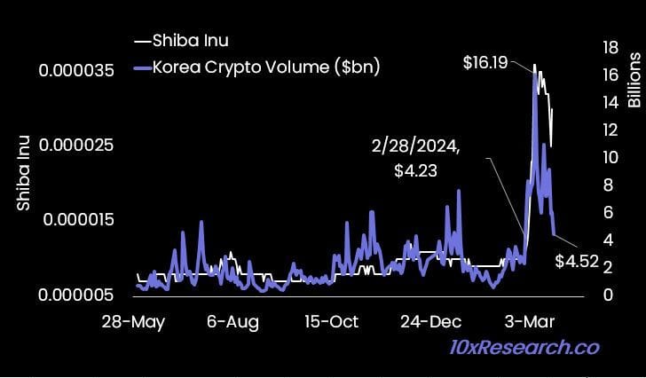 ๐10-12) ใพใใใใผใ ใณใคใณใฎShiba Inuใฏ190๏ผ ไธๆใใใใใใฎๅ็ใฎ170๏ผ ใใขใธใขใฎๅๅผๆ้ไธญใซ็บ็ใใใShiba Inuใฏ7ๆฅ้้ฃ็ถใงๆใๅๅผใใใใณใคใณใงใใใใใฎ7ๆฅ้ใงๆๅคง$10.7bnๅๅผใใใใShiba Inuใฎๆฅไธๆใฏใ้ๅฝใงๆด้จฐใใๆๅท่ณ็ฃใฎๅๅผ้ใๆฅๅขใใ2ๆ28ๆฅใซๅงใพใฃใใ้ๅฝใงใฎๆๅท่ณ็ฃใฎๅๅผ้ใ$16bnใใ$4.5bnใซๆฅ่ฝใใใใจใฏใใขใซใใณใคใณ/ใใผใ ใณใคใณใฎไพกๆ ผใฎไธ่ฝใฎๅ่งฆใใจใชใๅฏ่ฝๆงใใใใ