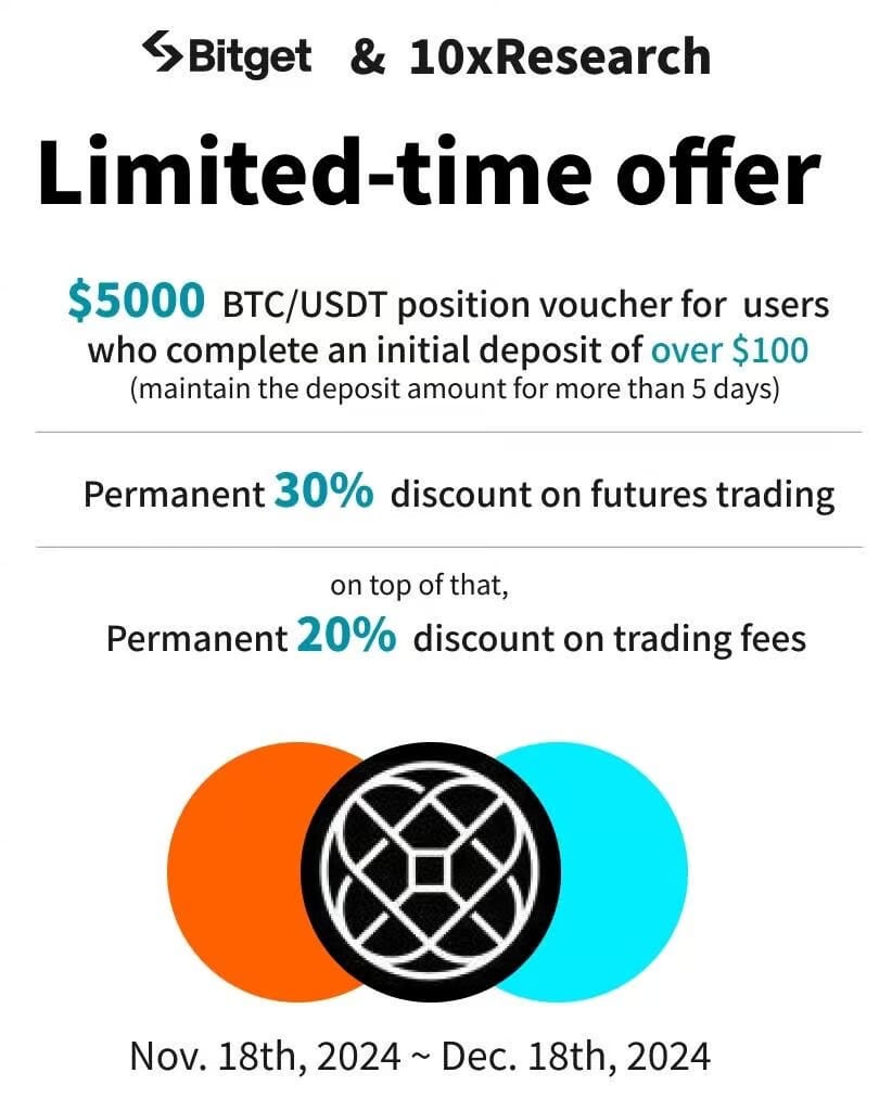 Bitget offers exclusive benefits for 10x Research members, including reduced trading fees and a BTC/USDT trading position voucher. Given these perks, we believe highlighting this opportunity for our community is worth highlighting.