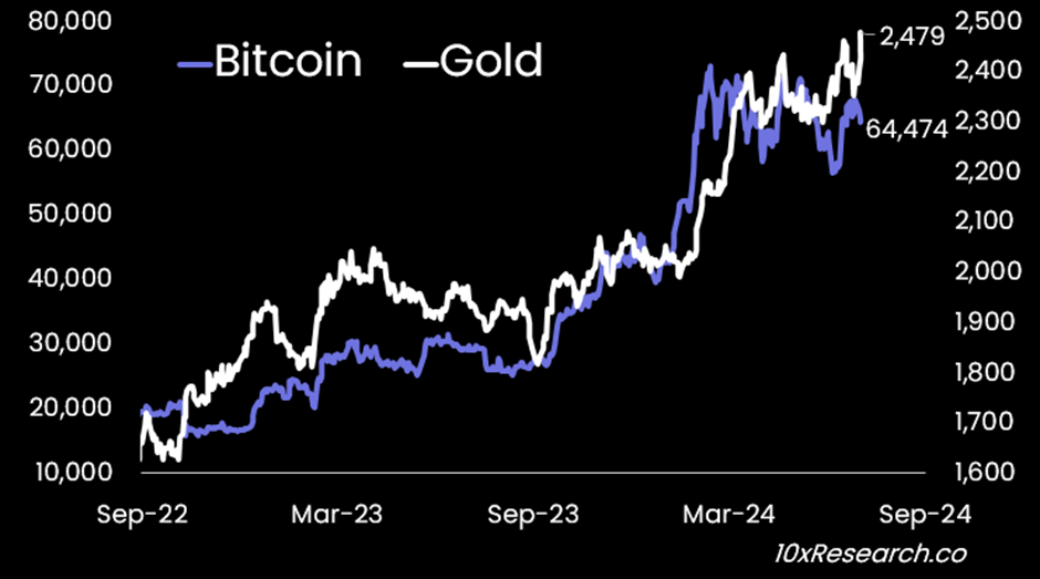 Bitcoin vs. Gold → Gold making new all-time highs… Bitcoin to follow?