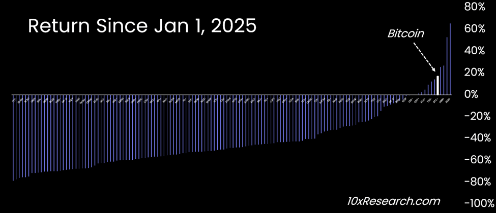 There are several reasons why altcoins are underperforming this cycle, and, with few exceptions, have resulted mainly in investors losing money. Since January 14, 2024, we’ve consistently recommended shorting altcoins while maintaining long exposure to Bitcoin. Year-to-date, Bitcoin is up 17%, while Solana and Ethereum have declined by 20% and 22%, respectively, meaning Bitcoin has outperformed them by roughly 37%. In other words, it’s been a highly effective long/short strategy.
