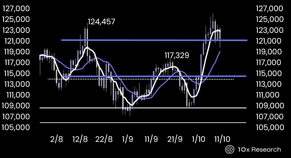 Bitcoin is up 7% so far in October, broadly in line with its typical seasonal pattern. While the move to $125,000 aligns with the cycle high we projected in our July 2023 report, the market landscape has changed dramatically since then. Despite trading only a few percent below its all-time highs, many investors are frustrated by the rally’s recent loss of momentum.