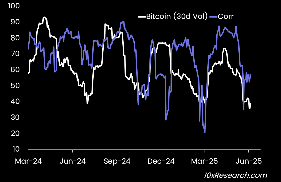 With Bitcoin’s correlation to the S&P 500 near the lower band and volatility relatively muted, there's a compelling case for equity investors to gain crypto exposure through stocks. A simple regression suggests Coinbase shares are currently trading 18% below fair value, potentially justified by its strategic equity stake in Circle. Robinhood remains in a strong uptrend, and Galaxy Digital may also be undervalued; in both cases, diversified crypto firms appear more attractive than pure-play miners.